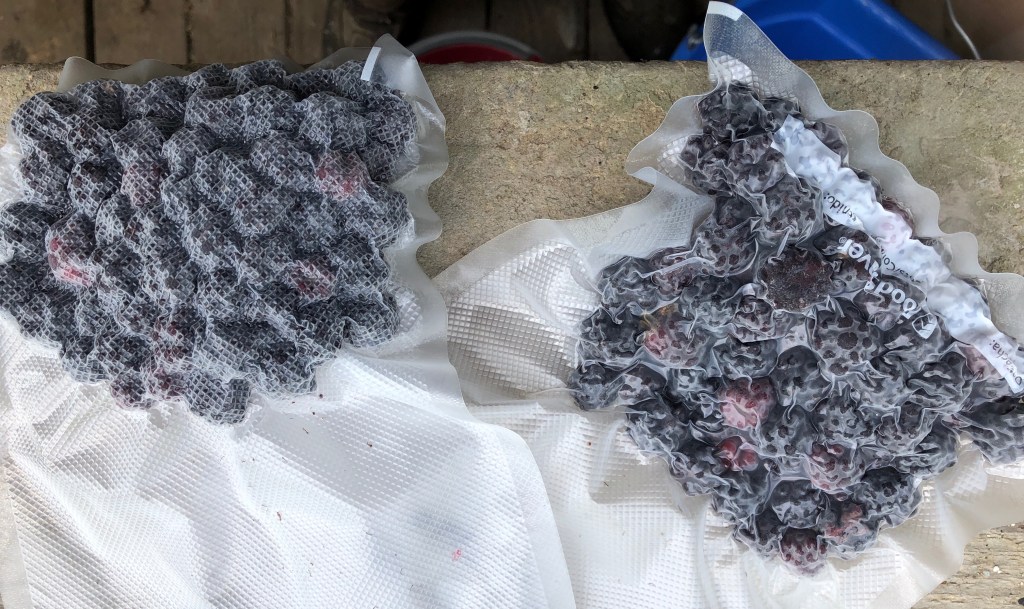 Lay out the berries and put them in the freezer. Next morning, scoop them into bags and freeze the bags. Done. I vacuum pack them. What about electricity? You say Mr. no electricity.