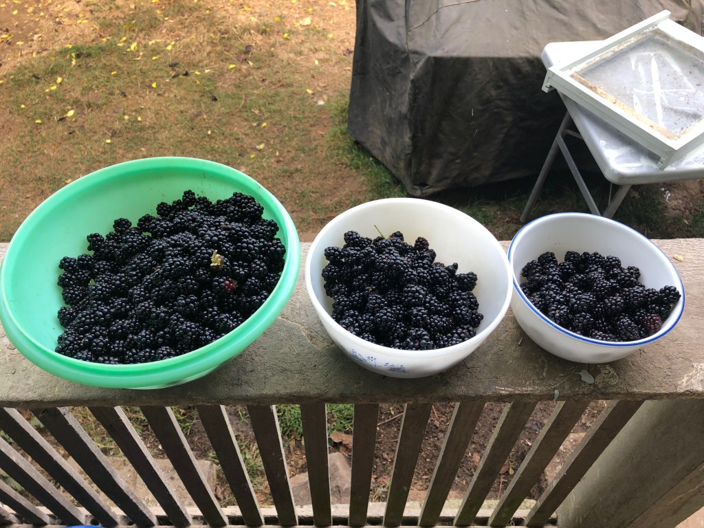 BLACKBERRY WINE – Much easier to do than you think it is. Here is a link if you want to try it yourself. https://practicalselfreliance.com/homemade-blackberry-wine/ (and you thought you could just eat them).
