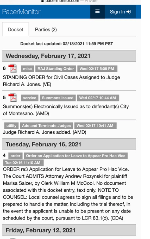 As an update to the posting earlier today concerning the recently filed ADA Civil Rights lawsuit by Marisa Salzer against the City of Montesano, further information is coming in.