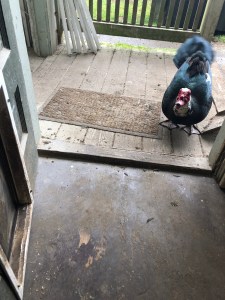 This was a well ordered place. The cats and dog going in and out at will. I didn’t have to do a thing. Now I have to keep the door thing inserted to keep the duck out, which means the cats and dog can’t go in and out and making racket all day…all night. In and out….up and down, on and on…..pure chaos around here.