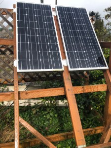 Solar stations are quite easy to do. About $500 on Amazon and you can get a kit. Buy a storage marine battery down at Whitneys and you are good to go. No gas, no wind, nothing. My little pictured set up provides enough power to run coffee pot in the morning, the small freezer for an hour here and there, charging tools, computers, batteries etc…..and enough left over to run a couple of lightbulbs and watch a movie in the evening. Next day, the battery fills up again. Don’t even need a sunny day.