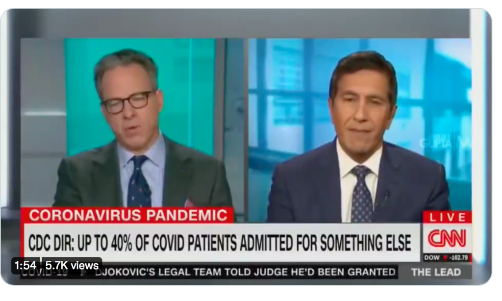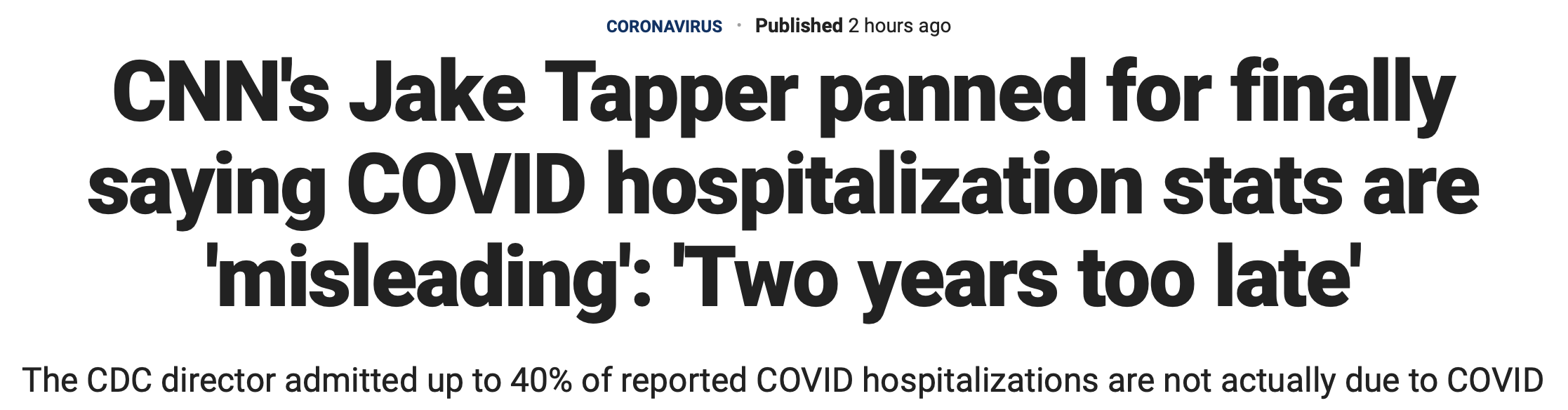 Well now. the CDC really stepped in it today didn’t they? Been doing damage control all day…everywhere. Gulp! That director, and I am being kind here, admitted ( and then quickly ran out and hired a media teacher). That…..wait for it……..75% of all these COVID COVID COVID hospitalizations were actually admitted for other reasons.