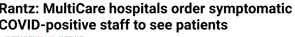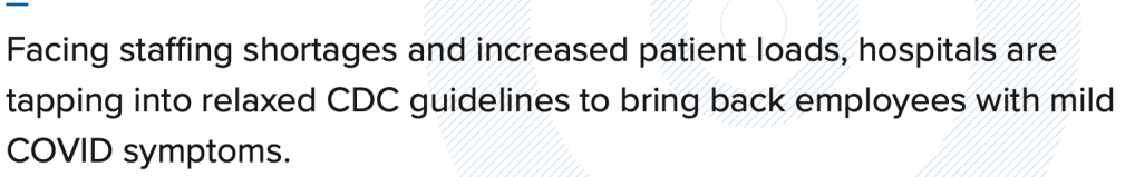 Hospitals everywhere are now asking, in some cases demanding, that covid sick staff come back to the hospital.