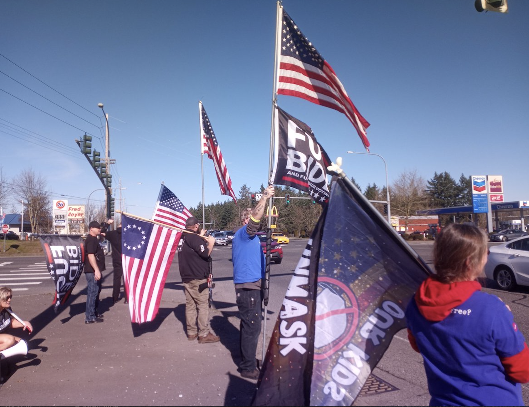 Protesters for freedom and an end to Gov Jay Inslee’s now 715 day long “emergency” took to the streets in force today. Below are a few pictures.