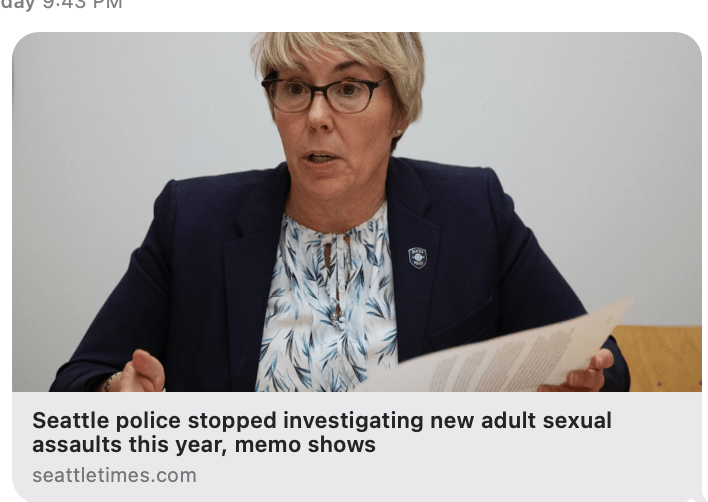 The Seattle Times is reporting that sexual assaults are basically just not even being investigated anymore.